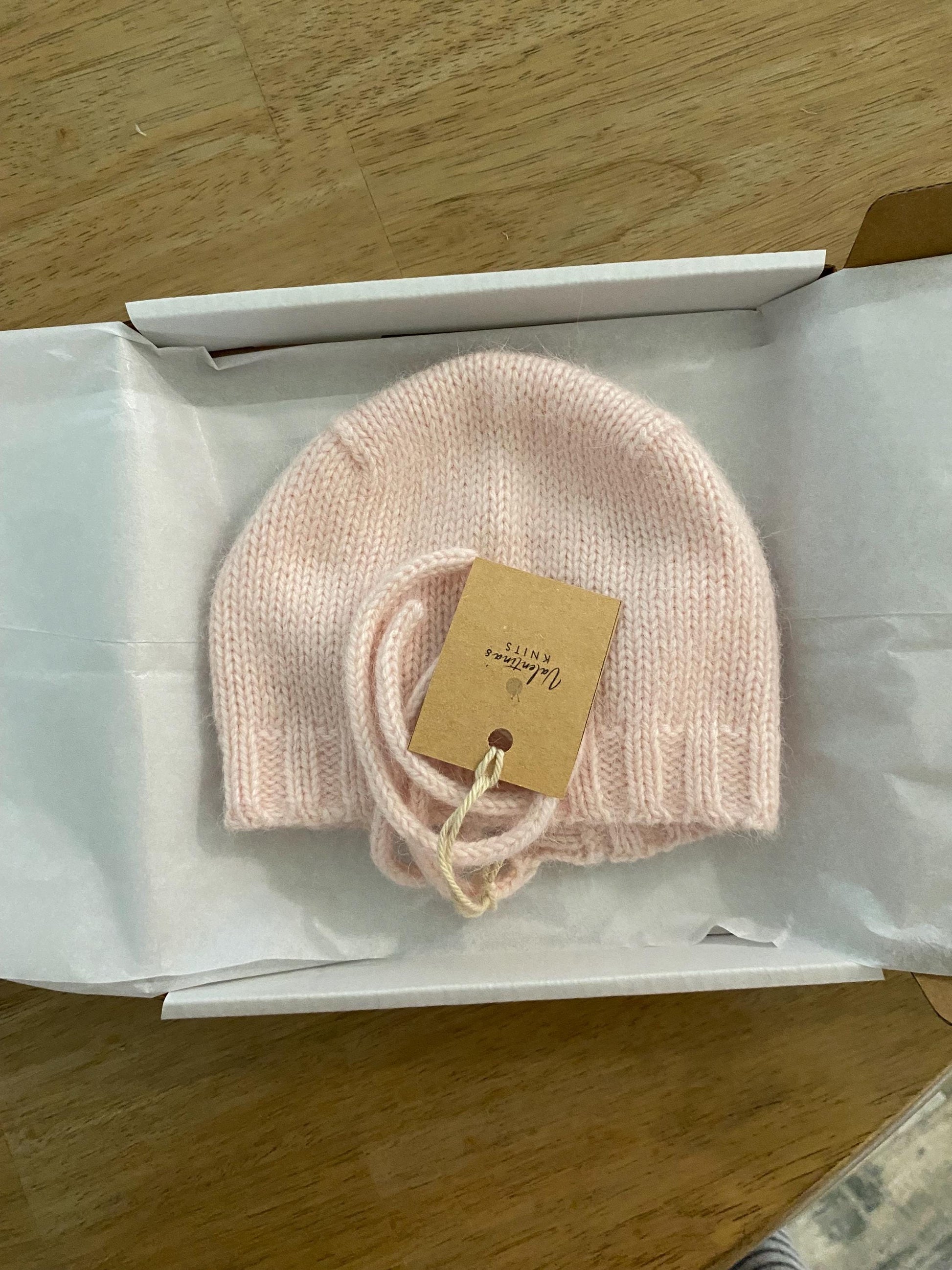 Cashmere Knit Baby Bonnet: Soft & Warm, Handmade in USA