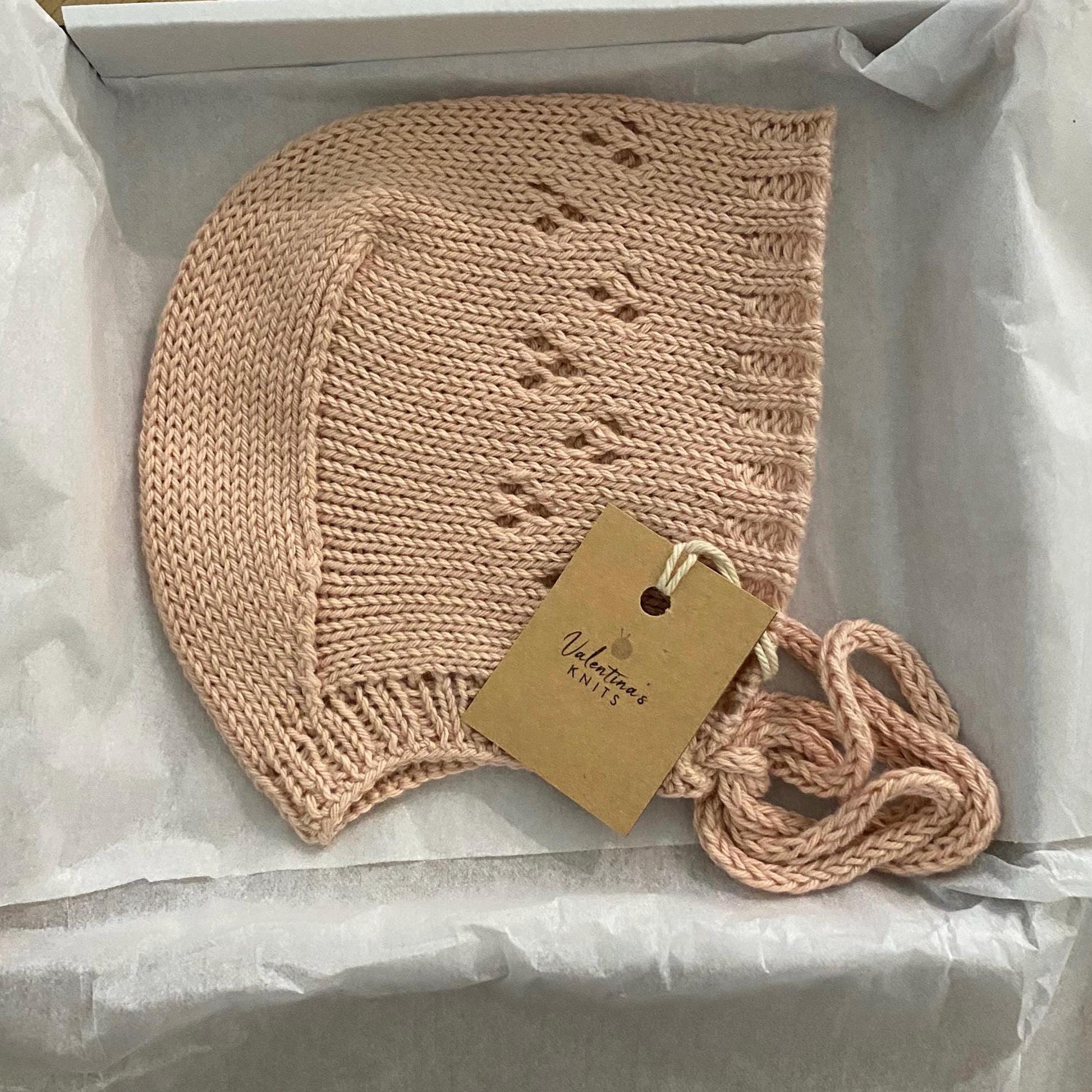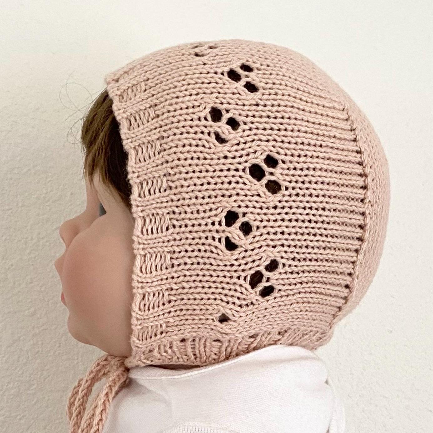 We offer two knitting patterns for this bonnet. Please write which pattern you prefer in the personalization box.