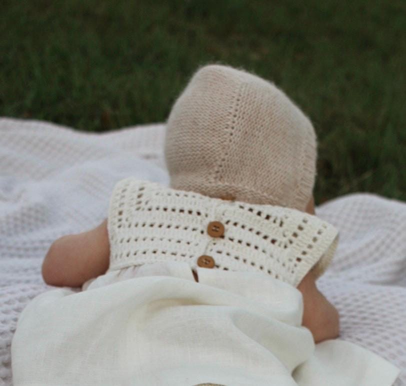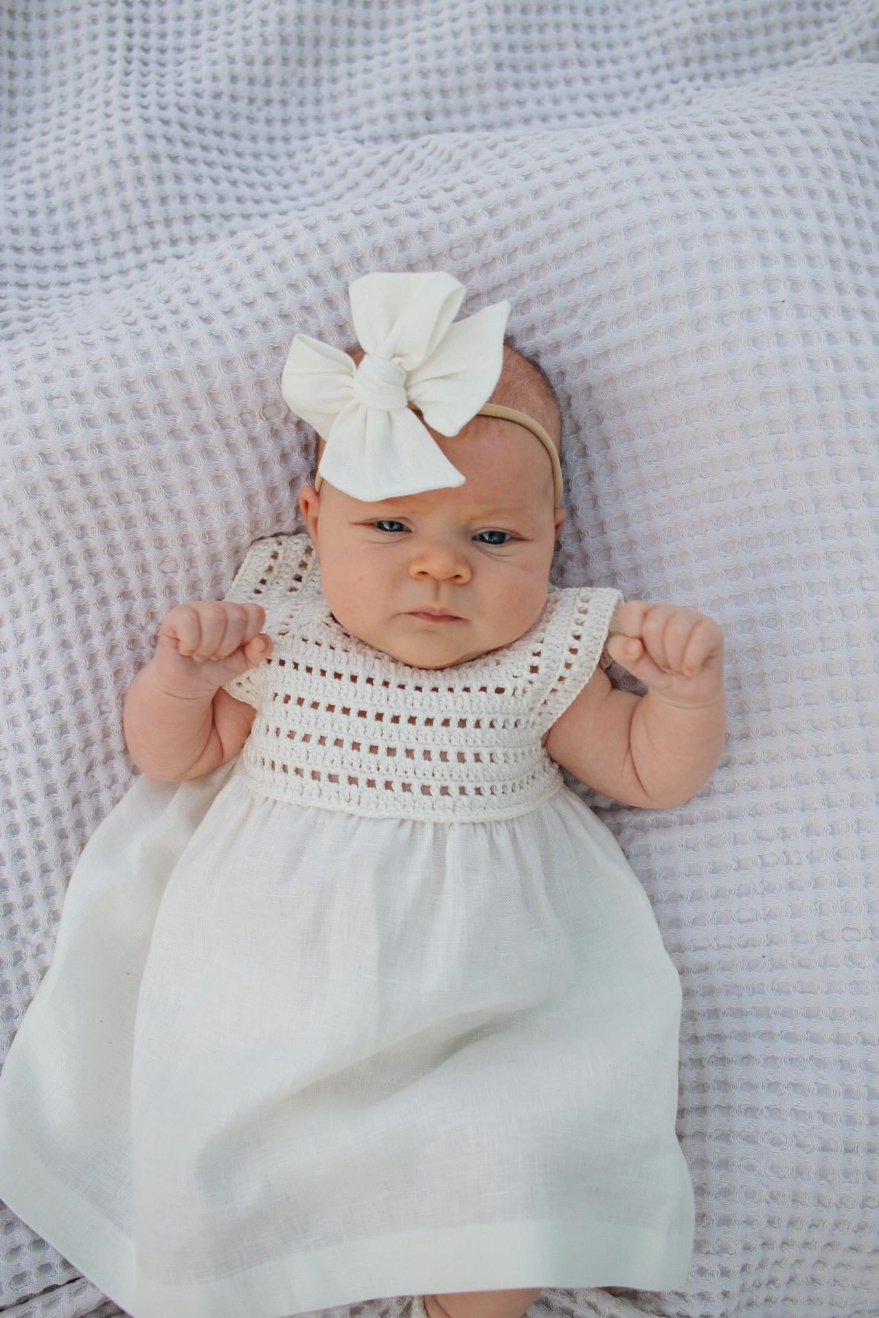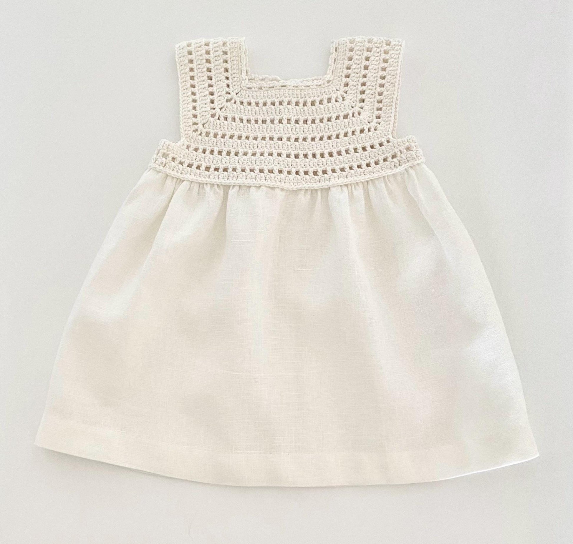 Handmade Linen Baby Dress: Crochet Yoke, Vintage Style